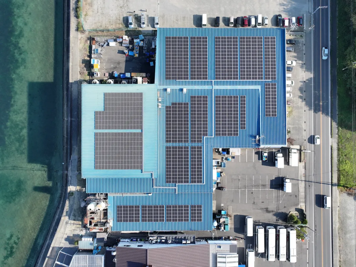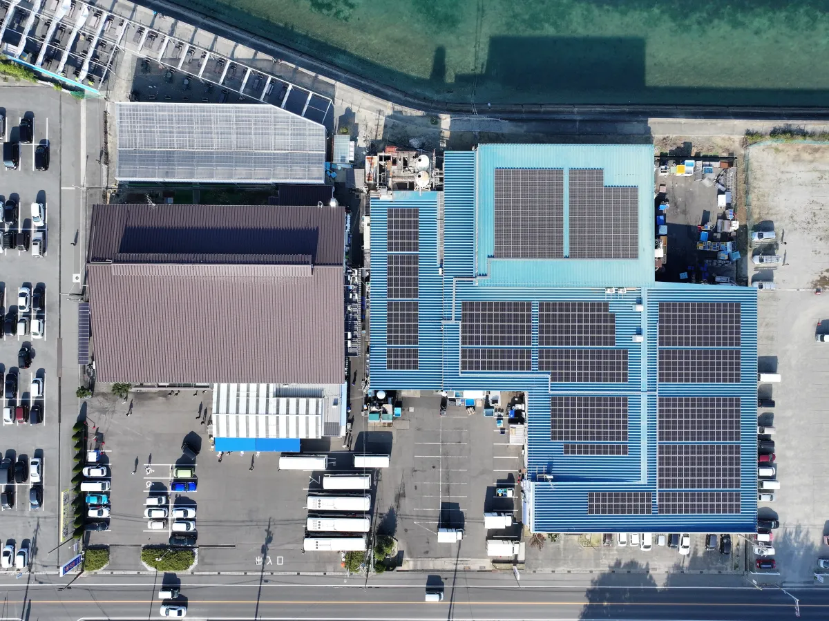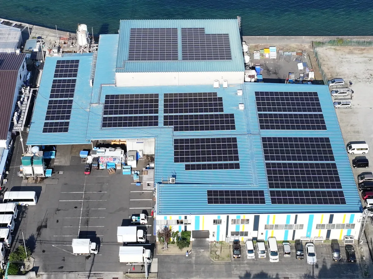 魚太郎株式会社様は、海の恵みを次世代につなぐための取り組みとして、知多本店に隣接している干物工場に263.61kWの太陽光設備を導入されました。本設備の年間発電量は約298,000kWhを想定しており、年間約125t-CO2の二酸化炭素排出量削減に寄与します。